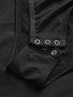 Add this must-have black bodysuit to your wardrobe because it's perfect for all occasions. Featuring a ITY fabric and panelled ballet design. Team with your favorite bottoms for a cute look.