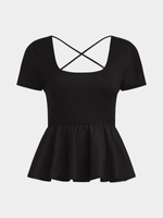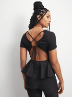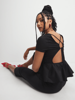 This black top is about to become your ride-or-die. Featuring a poplin fabric and sexy open back design. So whether you're hitting up brunch with the squad or catching a sunset at the park, this top's got you covered.