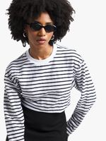 Lookin to upgrade the 'drobe, this top is the way to go. Featuring a single jersey fabric, long sleeve and boxy fit. Rock it with a carpenter jeans or a cute skirt and pair it with some sneakers for the ultimate fit!