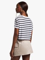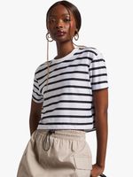 This top is giving summer vibes! Featuring a striped single jersey fabric and boxy design .Style with rip & repair mom jeans and sneakers for a fresh finish.