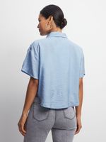 Perfect for a laid-back vibe, this boxy shirt looks chic paired with wide leg pants, sandals and a straw bag.