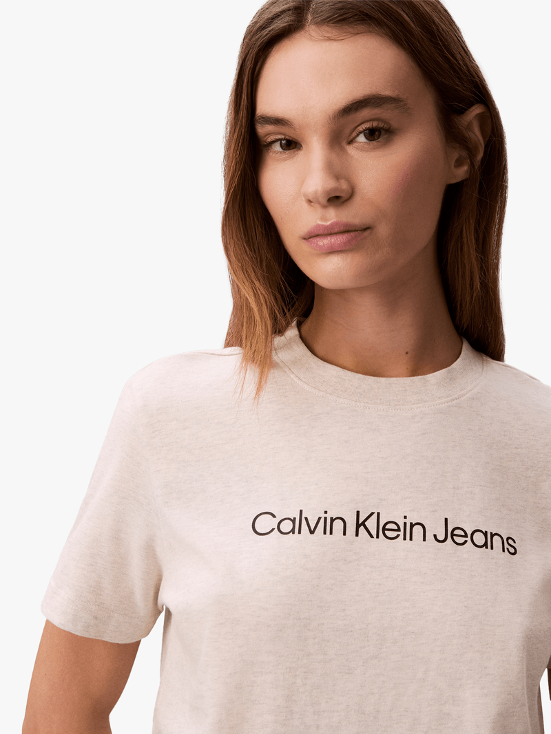 Level up your casual style with the Calvin Klein Beige A-Logo Classic T-Shirt. Made from comfortable cotton, this tee features the iconic logo for a touch of designer flair. Perfect for everyday wear, this versatile piece is a must-have for any wardrobe.