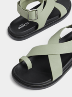 Faux leather upper with cross-strap design