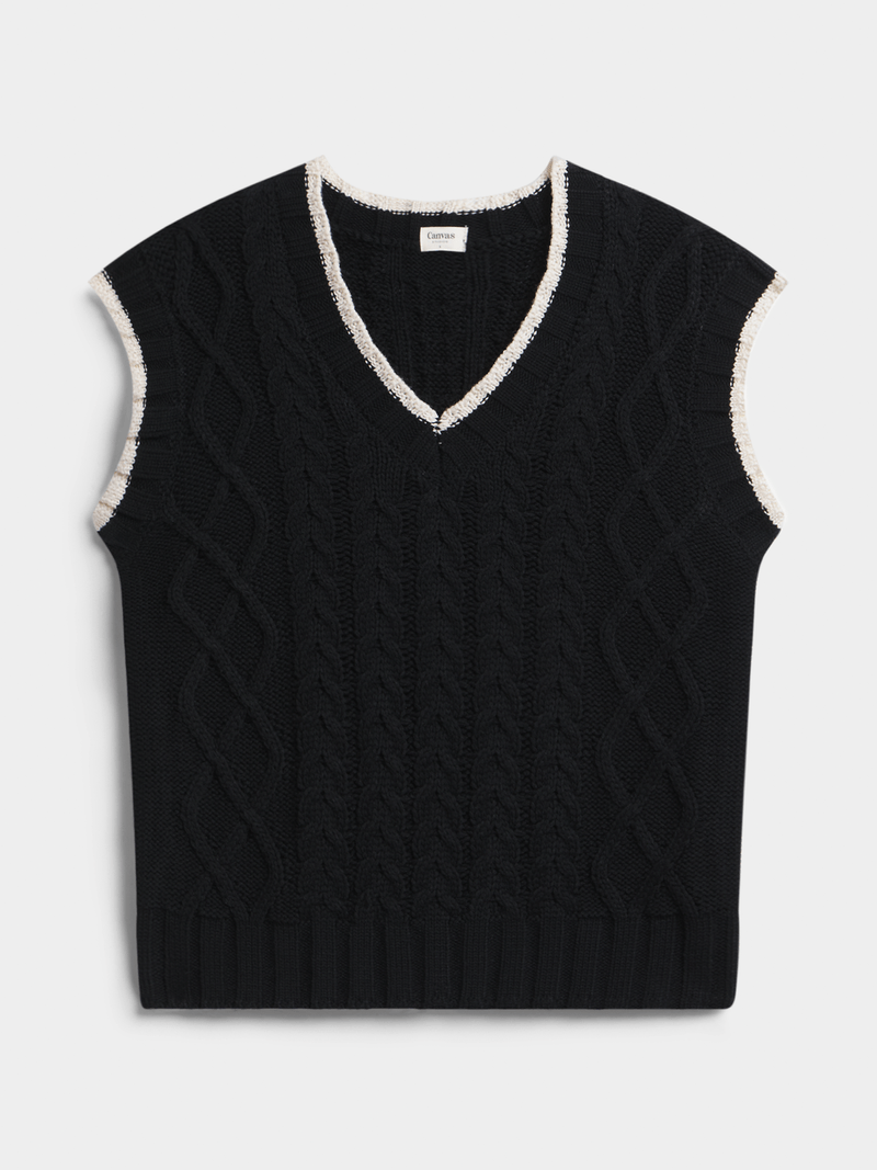 Cable knitwear with contrast edge on neck and armholes