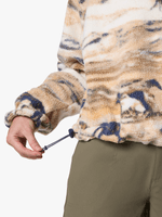 Featuring an eye-catching design, this classic is crafted of plush textured fleece to ward off chill, a snap-up front, customizable drawstring waist, and a handy zip pocket.