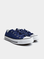 Step out in style with these trendy Chuck Taylor All Star sneakers. They offer a perfect blend of comfort and durability. Featuring a vibrant blue and white colorway, these sneakers are sure to make a statement. With a non-gender specific design, they are suitable for anyone looking for a versatile and fashionable footwear option. Get ready to step up your sneaker game with these cool kicks!