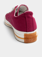 The Women’s Converse Chuck Taylor All Star (CTAS) Colour Pop in Burgundy/White breathes new life into the world’s most iconic low-top silhouette. This edition features a rich, deep burgundy canvas upper that provides a sophisticated backdrop for vibrant "colour pop" accents, giving the classic design a modern, playful edge. Staying true to its heritage, the sneaker includes the legendary star ankle patch, a durable rubber toecap, and the signature vulcanized rubber outsole for reliable traction. With its breathable lightweight construction and timeless lace-up fit, these sneakers are the perfect statement piece to add a bold splash of color to your casual rotation.