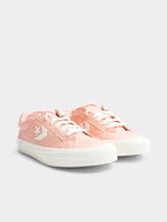 Get ready to step up your style with these comfy and chic pink/white sneakers from Converse. Made with durable canvas material, these sport casual shoes are perfect for everyday wear. With a classic design and a touch of pink, these sneakers are sure to make a statement. Whether you're hitting the gym or running errands, these sneakers will keep you looking cool and feeling comfortable all day long. Lace up and get ready to turn heads!