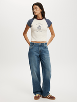 Women's Cotton On Blue Retro Raglan Graphic T-Shirt