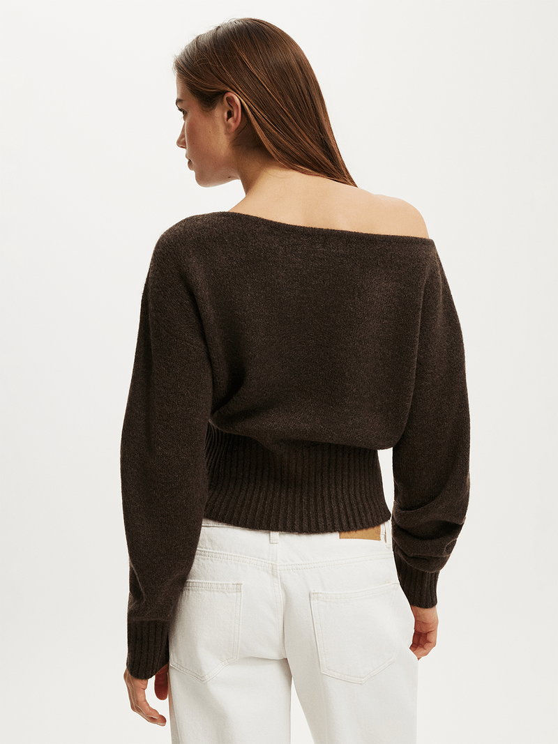 - Slouchy off the shoulder neckline