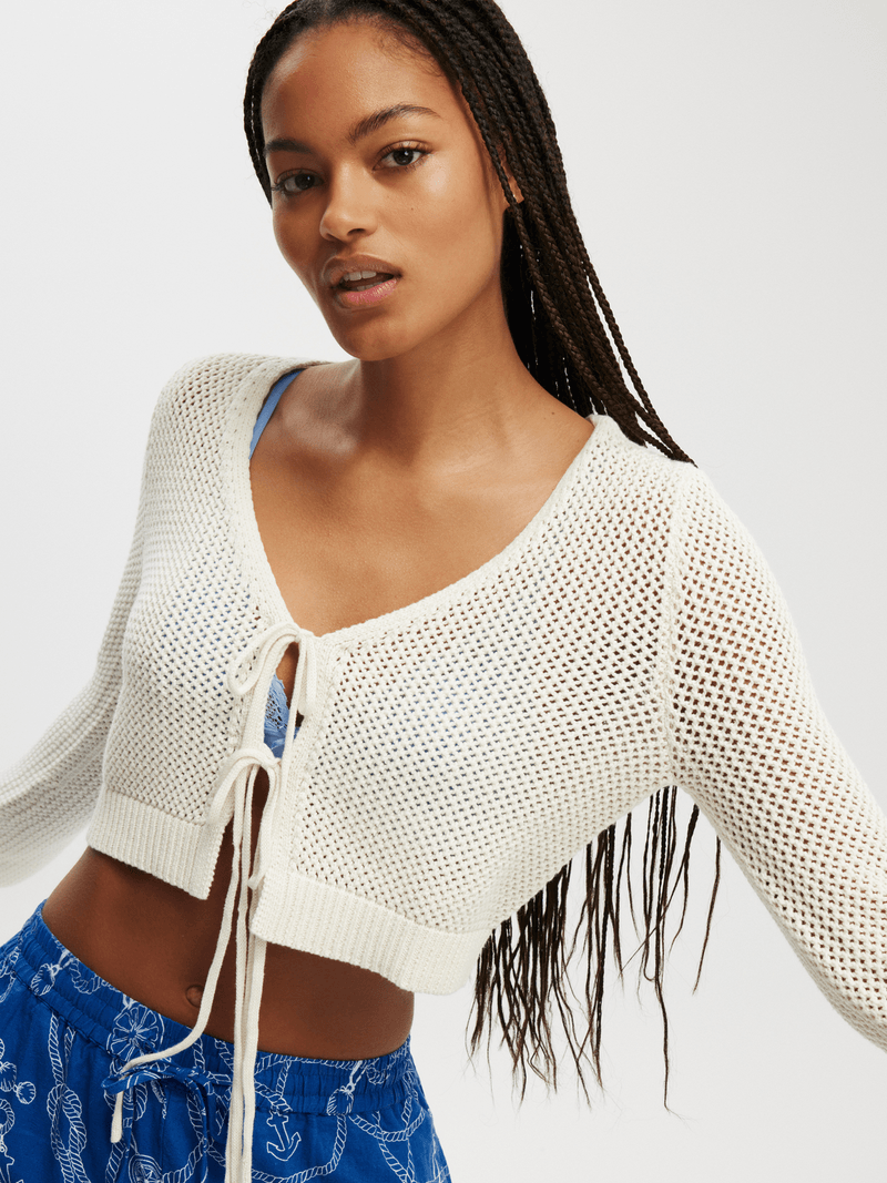 - Tie front closure