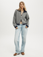 - Contrast collar, cuff, hem band and pocket
