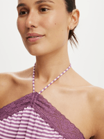 Halter neck with self tie strap