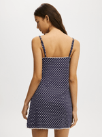 Curved V-neckline with lace trim sewn on the inside
