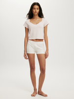 A dreamy, softly peached jersey fabric with added elastane for endless comfort