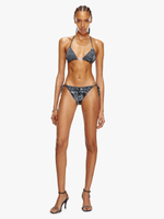 This triangle bikini top is printed to look like denim fabric in a black wash. Cut from recycled materials, it's secured between the cups with a metal Oval D plaque.
