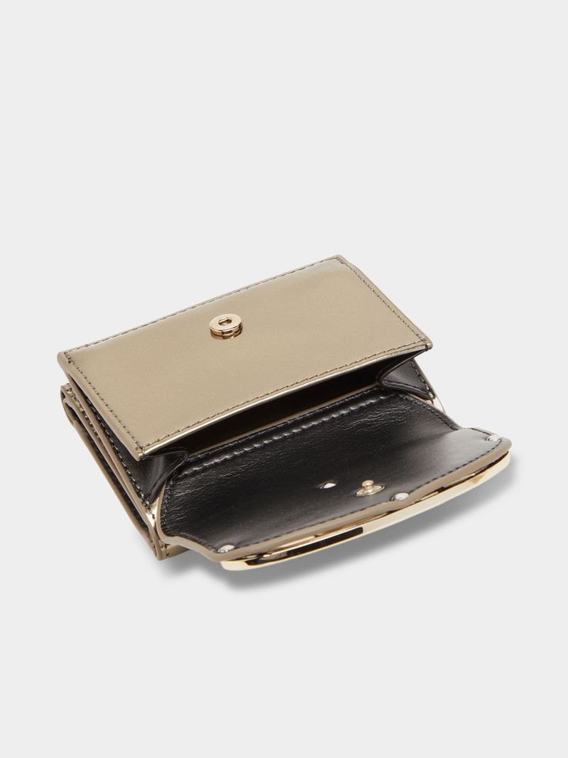 This women's wallet is crafted from mirrored leather. Adorned with matching Oval D hardware, it has a compact, tri-fold design kitted with multiple card slots, a note compartment and a pocket for coins.