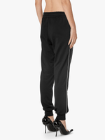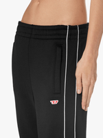 These women's black loopback jersey tracksuit bottoms combine organic cotton with recycled stretchy nylon for a super-sporty texture. Contrast piping defines their regular-fit silhouette. Complete with a small embroidered D patch below the left pocket.