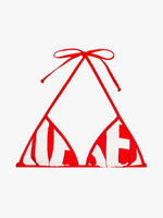 Women's bikini top in quick-dry fabric spun from recycled fibres and stretch. This style is emblazoned with contrast maxi Diesel lettering, cut off to form the triangle cuffs.