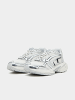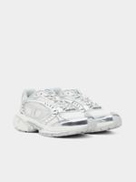 These women’s trainers feature a modern sportswear construction. Licked with high-gloss silver accents, they have breathable double-layer mesh and PU uppers, and bouncy gripped soles. The oversized Oval D branding captures Diesel’s audacious spirit.
