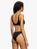 Women's low-cut bra top made of smooth stretch nylon. A cut-out Oval D decorates the left strap.