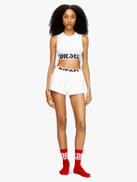 These women's shorts are crafted from baby Terry fabric in a technical cotton blend, ensuring a soft and durable feel. Designed with a drawstring elastic waistband for a personalized fit, they feature a prominent Diesel logo that adds a bold touch.