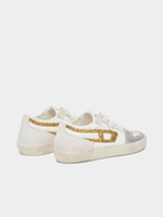 Step up your sneaker game with the Diesel White S-Leroji D-1 Low W Sneakers. Made with 100% polyester, these premium kicks are easy to clean with just a damp cloth. Rock a fresh look with these stylish sneakers from Diesel. Don't miss out on this must-have addition to your collection.