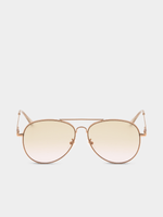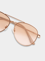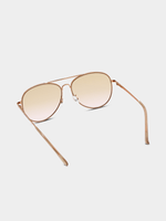 Elevate your style with our gold aviator sunglasses. Made of metal, these sunglasses are perfect for sunny days. With a classic aviator style and a tan lens, they add a touch of sophistication to any outfit. Shine bright with these must-have shades.
