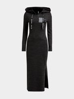 This dress is everything we're vibin' on this season. Featuring a charcoal fleece fabric, hood and long sleeve.Rock it with yo' fav sneakers for a knock-out fit!