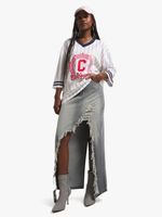 This skirt is the hottest around rn. Featuring a grey wash fabric, hot AF rip & repair with front slit design, you can rock this bad boy with your fav season pieces and be sure to drop jaws babygirl! We're obsessed!