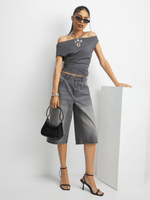 Home/Women/Clothing/Shorts/Women's Grey Wash Long Bermuda Denim Shorts