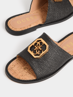 Step into effortlessly chic style with these black slide sandals from Guess. Made with a rubber sole and PP raffia upper, these sandals are both comfortable and trendy. Perfect for any occasion and easy to pair with any outfit. Enjoy comfort and style with these versatile sandals.