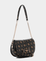 Carry your essentials in style with the Guess Brown Carrie Logo Flap Shoulder Bag. Made from eco-friendly PU fabric, this chic bag features a signature Guess logo design. Imported from China, this versatile shoulder bag is a must-have accessory for any outfit. Its spacious interior and adjustable strap make it perfect for everyday use.
