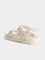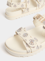 Step out in style with these cream logo strap sandals from Guess. Made with a luxurious jacquard fabric, they are perfect for adding a touch of sophistication to any outfit. With a comfortable design and high-quality materials, these sandals are sure to be your new go-to for the season.