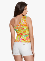 Elevate your style with our Guess Multi One Shoulder Linda Top. Made from a comfortable cotton blend, this top features a trendy one-shoulder neckline. Perfect for any occasion, this top is a must-have in your wardrobe. Easy to care for with cool wash and warm iron instructions.