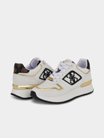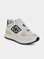 Step out in style with the Guess White Round Toe Sneakers. These stylish shoes feature a PU fabrication with a small peony logo detail. Easy to clean with a simple wipe down, these sneakers are a versatile addition to any wardrobe. Made in China, they are perfect for everyday wear.