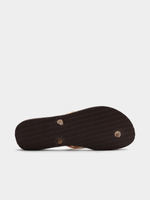 The Elegance Print flip-flops bring a refined touch to casual footwear, offering both sophistication and style. Featuring flat straps with a hollow detail on one side, these flip-flops add a unique design element that sets them apart. The elegantly printed sole, striped in complementary colors, enhances the overall aesthetic, making them a versatile choice for a variety of outfits.