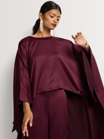 Longline Top with High Neck and Flowing Sleeves