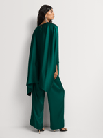 The Saara set is where fluid design meets modern refinement. This elegant co-ord features a soft, oversized top with dramatic drape and flared sleeves, paired with wide-leg trousers that flow with ease. A versatile statement in comfort dressing—polished enough for occasion wear, relaxed enough for everyday luxury.