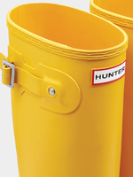 Perfect for wet weather conditions, this women's Wellington Boot has been at the heart of the Hunter Original brand since its introduction in 1956. Formed of natural rubber, each pair is made from 28 hand-cut parts and assembled over three days on an aluminium last bespoke to Hunter, before being vulcanised for superior protection. Featuring the Hunter Original tread pattern, and a comfortable polyester lining, these tall black welly boots are a rainy-day necessity. Certified Vegan
