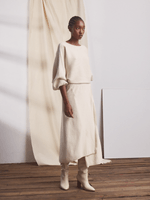 Part of a co-ord knitwear set with slash neck jumper