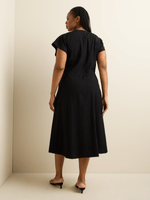 Shaped cutline details into waist and skirt