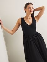 Home/Women/Clothing/Dresses/Women's Iconography V-neck Fabric Combo Dress Black