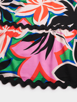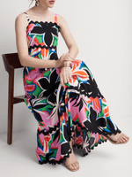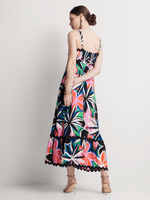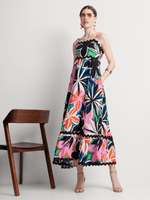 Floral Wave Trim Sleeveless Maxi Dress in Black
