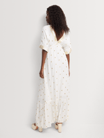 Crafted from 100% cotton, this kaftan dress drapes beautifully and breathes easily.