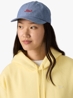 The Women's Levi's Blue Alex Ov Chambray Cap offers a lightweight, stylish option. Made from soft chambray, it's the perfect subtle accessory for sunny days.