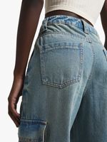 Women's Light Wash Wide Leg Cargo Jeans