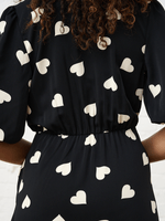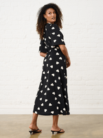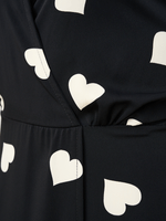 Stay stylish with the Me&B Black and White Heart Wrap Dress. Made from 100% polyester, this dress features a cool wash and cool iron for easy care. The wrap design and heart print add a fun touch to your wardrobe. Perfect for any occasion, this dress is a must-have for your collection.