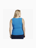 Introducing the Women's Me&B Blue The Ultimate Vest. Made from a blend of rayon and spandex, this vest is soft and comfortable. It features a cool wash and cool iron care instructions. The model is wearing a size UK10/Small. This versatile vest is perfect for any occasion.