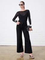 Add a touch of contemporary elegance to your wardrobe with the Women's Me&B Boat Neck Mesh Top in Black. This versatile piece features a sophisticated boat neckline and a sheer mesh finish, making it the perfect layering essential for transitioning from day to night with ease.